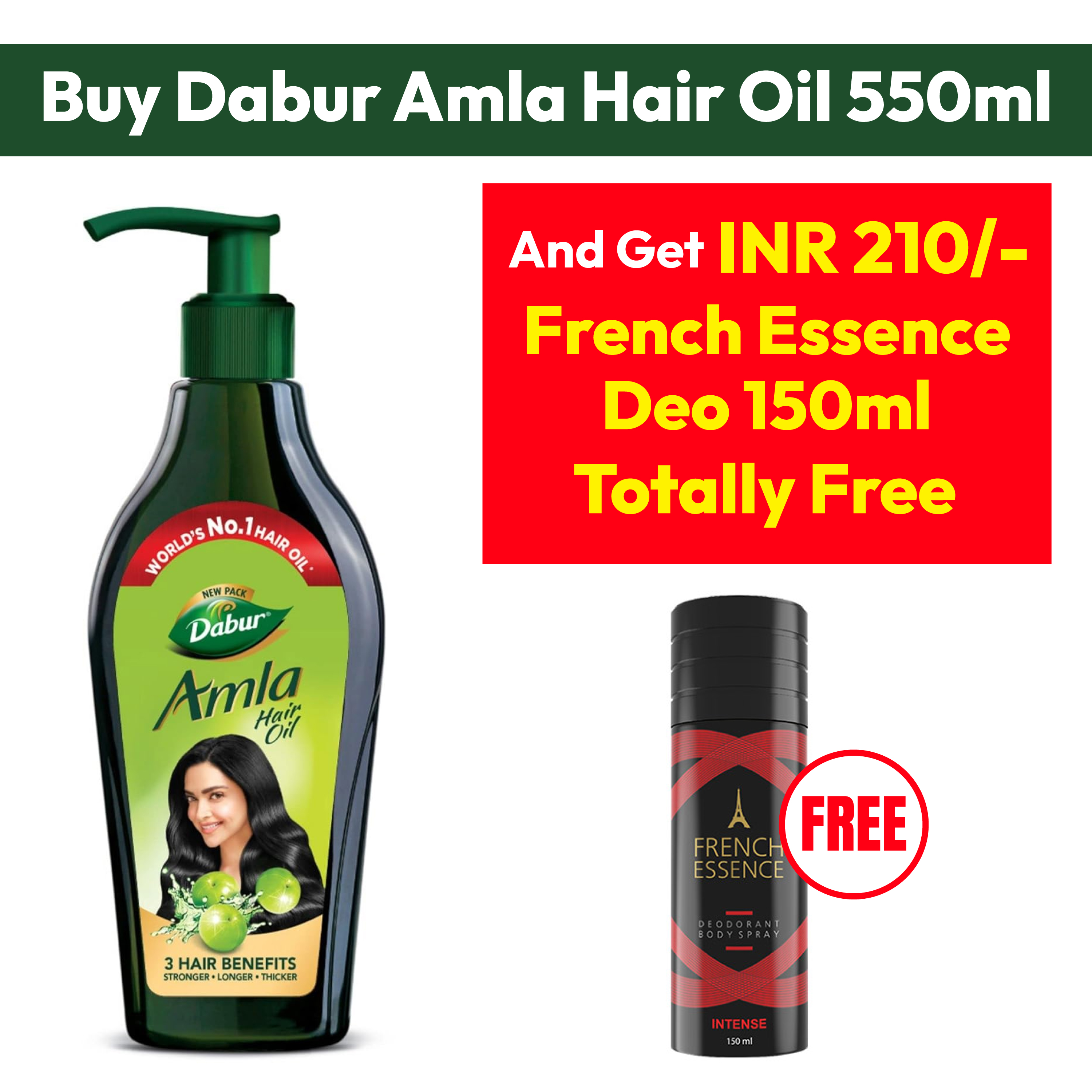 Dabur Amla Hair Oil 550ml + French Essence Deo 150ml free