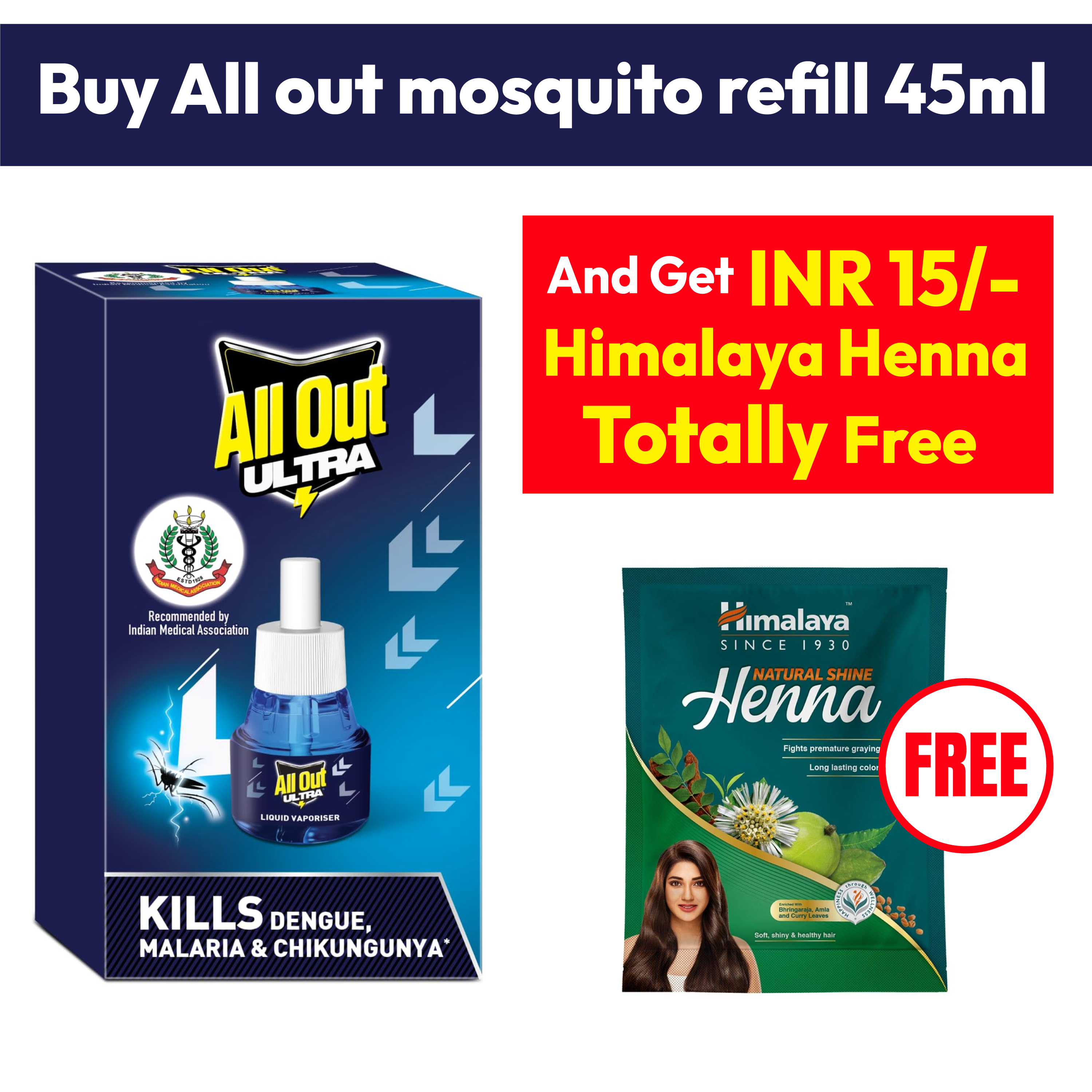 All Out Mosquito Refill 45ml + Himalaya Henna Free