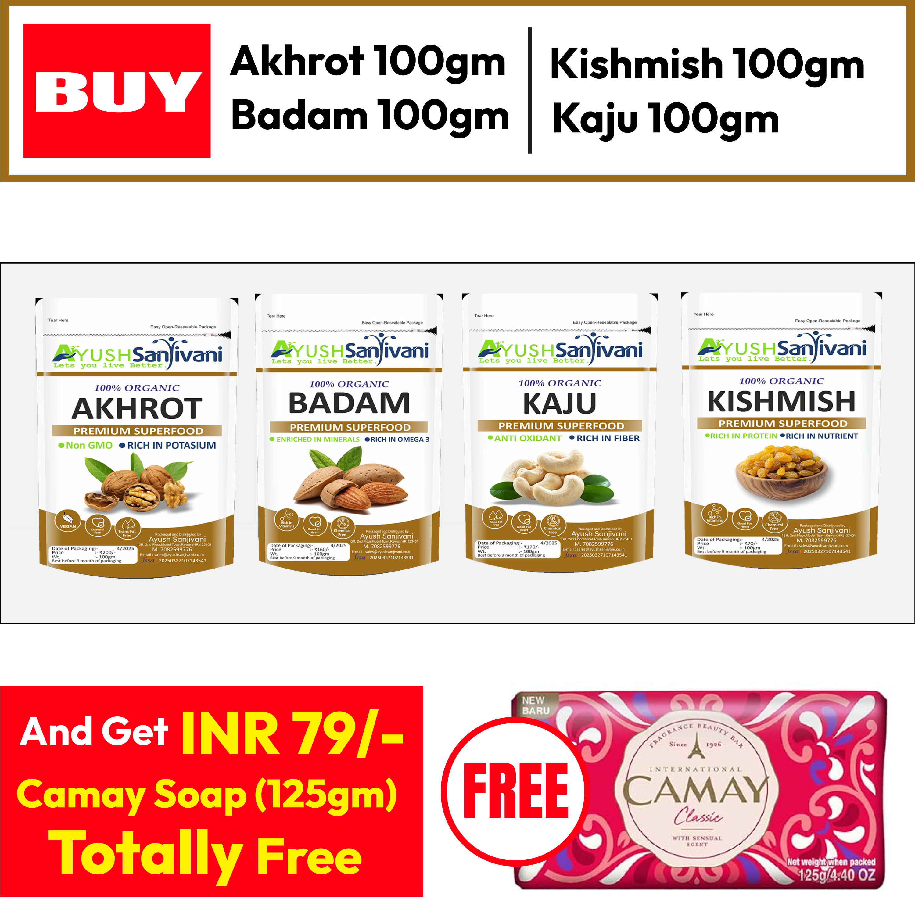 Dry Fruits Combo Pack + Camay Soap Free 125gm