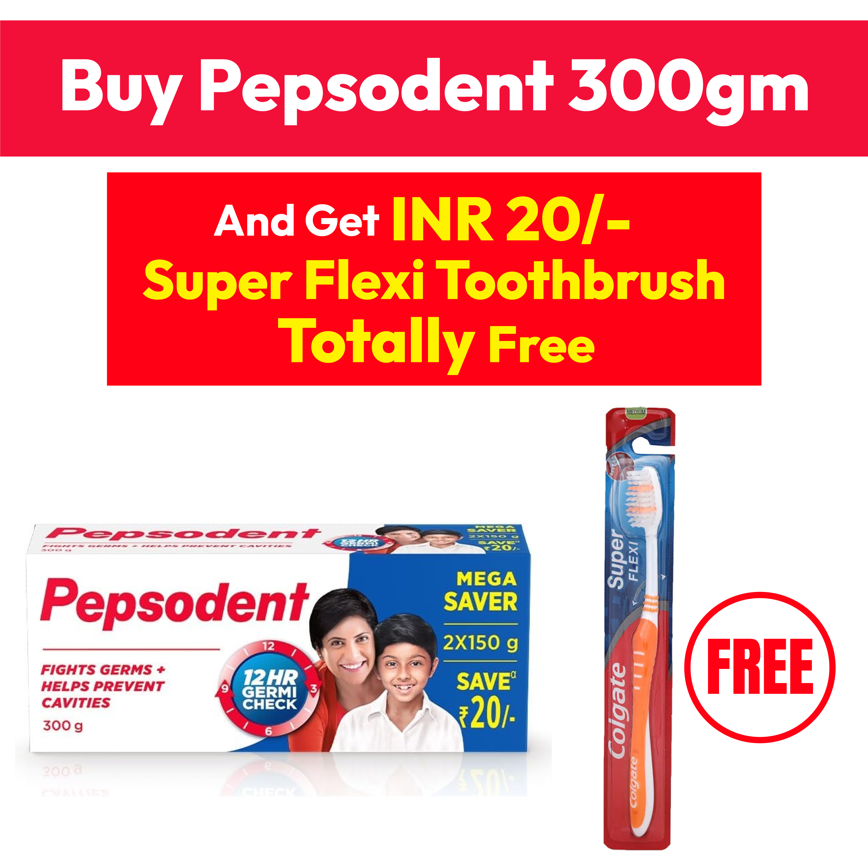 Pepsodent 300gm + Super Flexi Toothbrush Free
